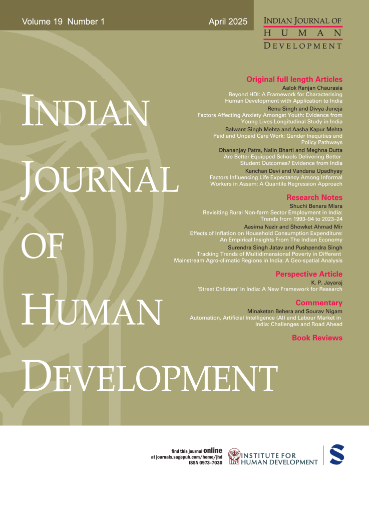 The Indian Journal of Human Development (IJHD) is a multidisciplinary, peer-reviewed journal dedicated to theoretical and empirical research in human development. It is published by Sage in association with the Institute for Human Development, New Delhi.