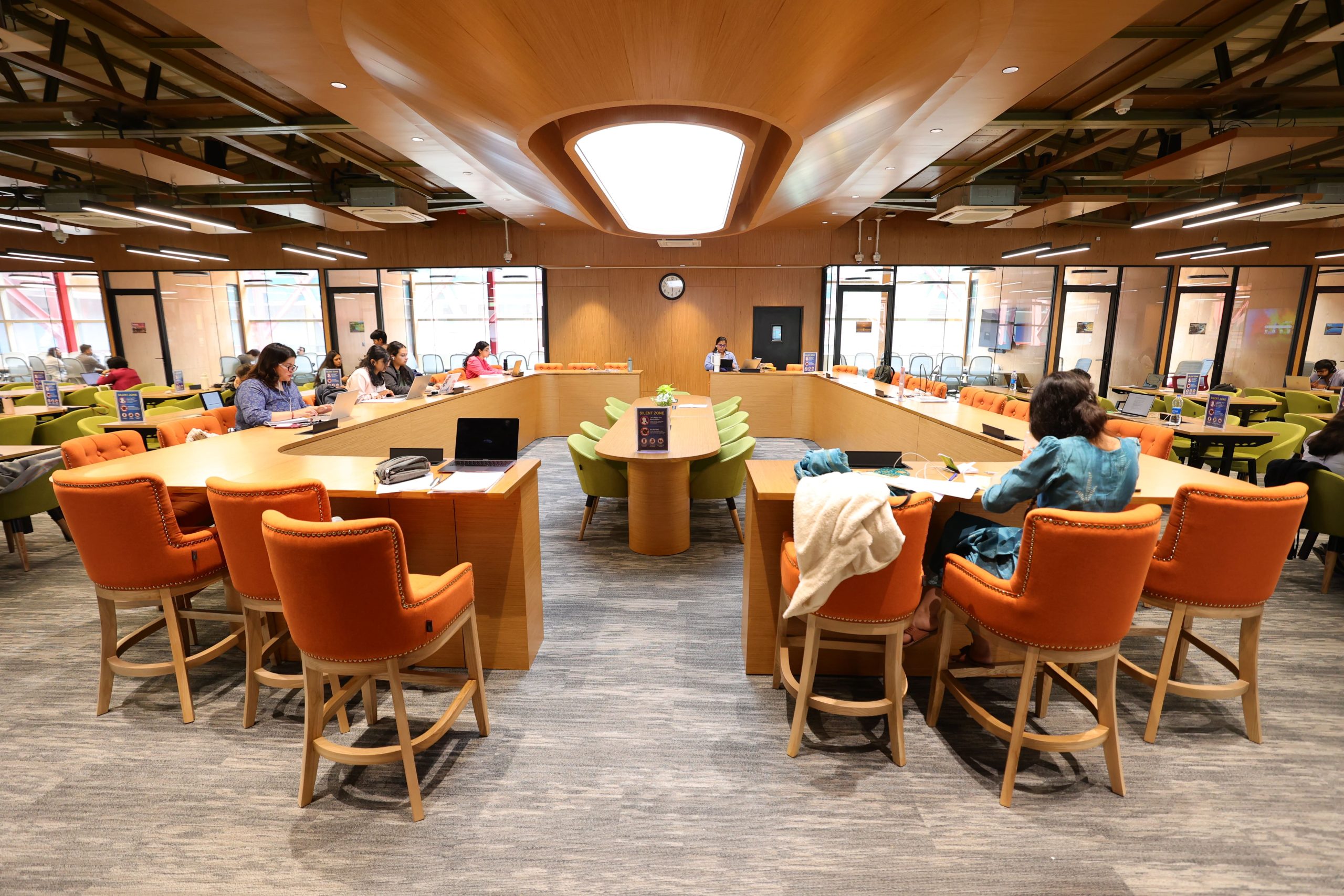 The Global Library offers study spaces throughout its premises, encompassing all four wings, the central hall ground floor and the mezzanine.